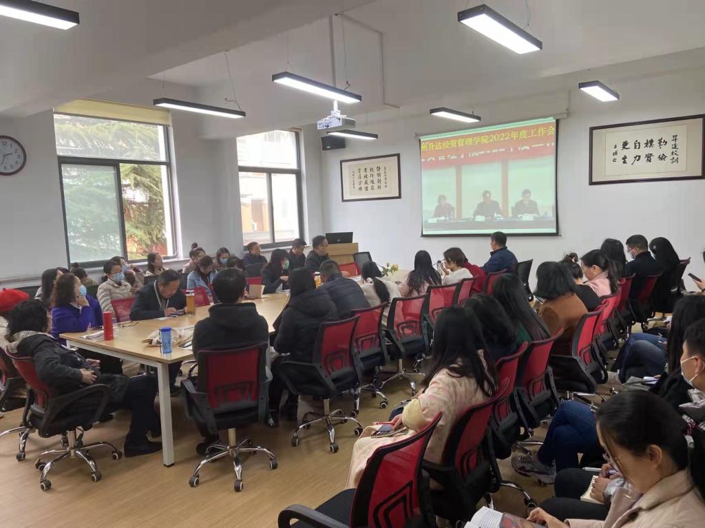 2022年3月3日下午,学校2022年度工作会议通过视频会议形式召开,在院党委石皓召书记的组织下,外国语学院全体教职工准时出席,在分会场——学院会议室参加了此次会议。