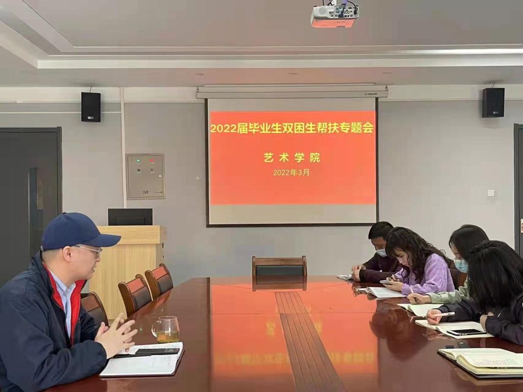 2022年3月9日,我校艺术学院面对复杂严峻的就业形势,高度重视家庭经济困难和就业困难的双困生就业帮扶工作,帮助双困生圆“就业梦”,开展2022届毕业生双困生帮扶专题会,2022届全体毕业班辅导员出席会议。