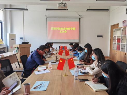 2022年3月9日上午管理学院召开安全教育专题工作会,管理学院党委书记张小雁、行政秘书许广庆和全体辅导员参加此次会议,会议由许广庆老师主持。