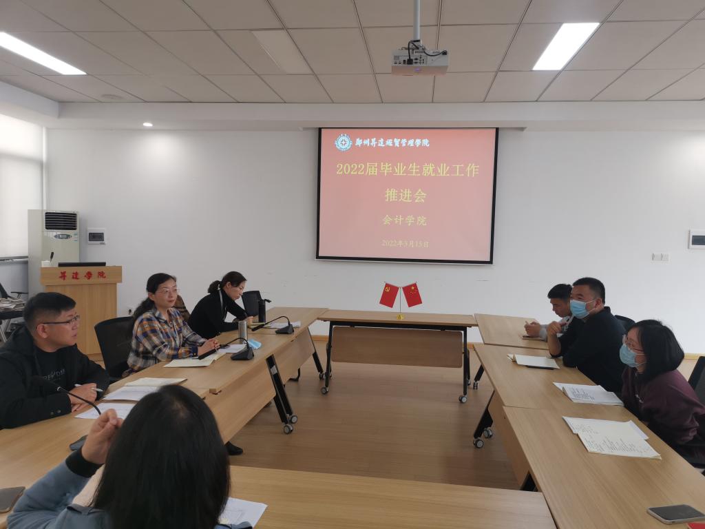 2022年3月15日下午16:00,在教学4号楼29会议室召开了2022届毕业就业工作推进会。会计学院党委书记张蕾、会计学院行政秘书兼团委书记陈刚、会计学院行政秘书兼团委副书记刘锦、2022届就业专员鲁玲玉、刘叶青以及全体22届毕业班辅导员参加了此次会议。会议由张蕾书记主持。