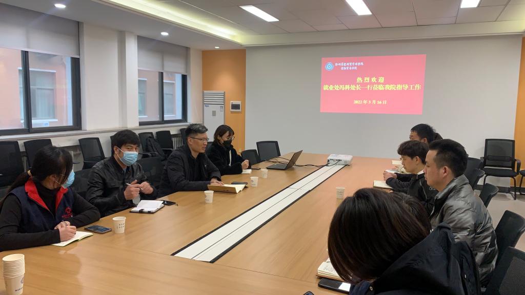 2022年3月16日14:30在3号楼212会议室,就业处冯科处长,张志顺、张若晨和王洋老师一行到金贸学院指导就业工作。金贸学院党委书记钟江鸽、就业专员及2021届、2022届全体毕业班辅导员参加了本次会议,会议由金贸学院党委书记钟江鸽主持。