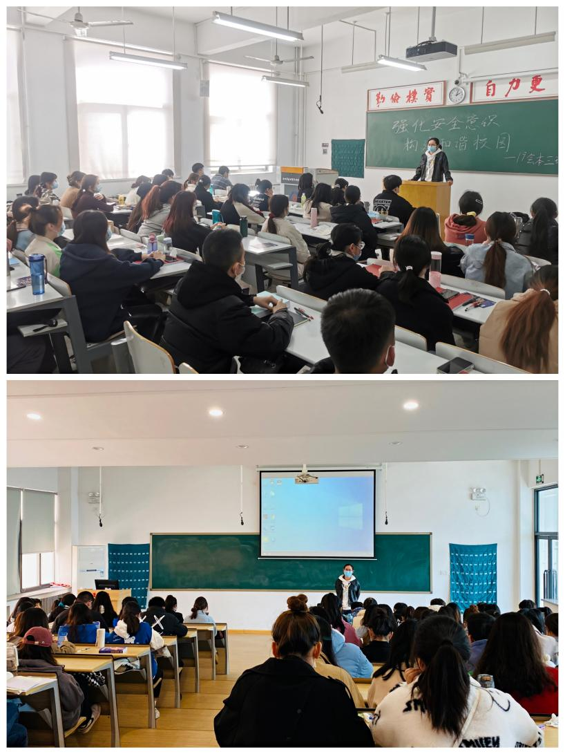 班会上,辅导员刘爽老师首先提醒大家疫情防控期间同学们要树立高度的安全意识,要充分认识到安全工作的重要性和紧迫性,防患于未然;其次,要注意宿舍安全,刘爽老师用身边的实际财物被盗等例子告诉大家不要掉以轻心,在宿舍要留意陌生人进出,做到出宿舍落锁,防止贵重物品丢失;接着,刘爽老师强调在疫情防控特殊时期一定要注意自己的身体健康,在各项活动中要注意运动安全,运动前要充分做好准备活动,运动时不要剧烈碰撞,以免撞伤或摔伤;最后,同学们针对主题班会内容进行互动,大家各抒己见,对日常生活中可能出现的各种安全隐患进行讨论和补充,并给出自己预防事故发生的建议。