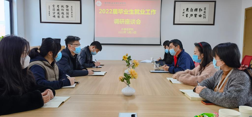 在调研中,就业处冯科处长首先向与会人员表明了本次调研的目的及意义,同时对外国语学院2022届就业工作给予高度肯定。