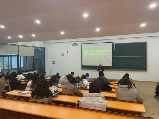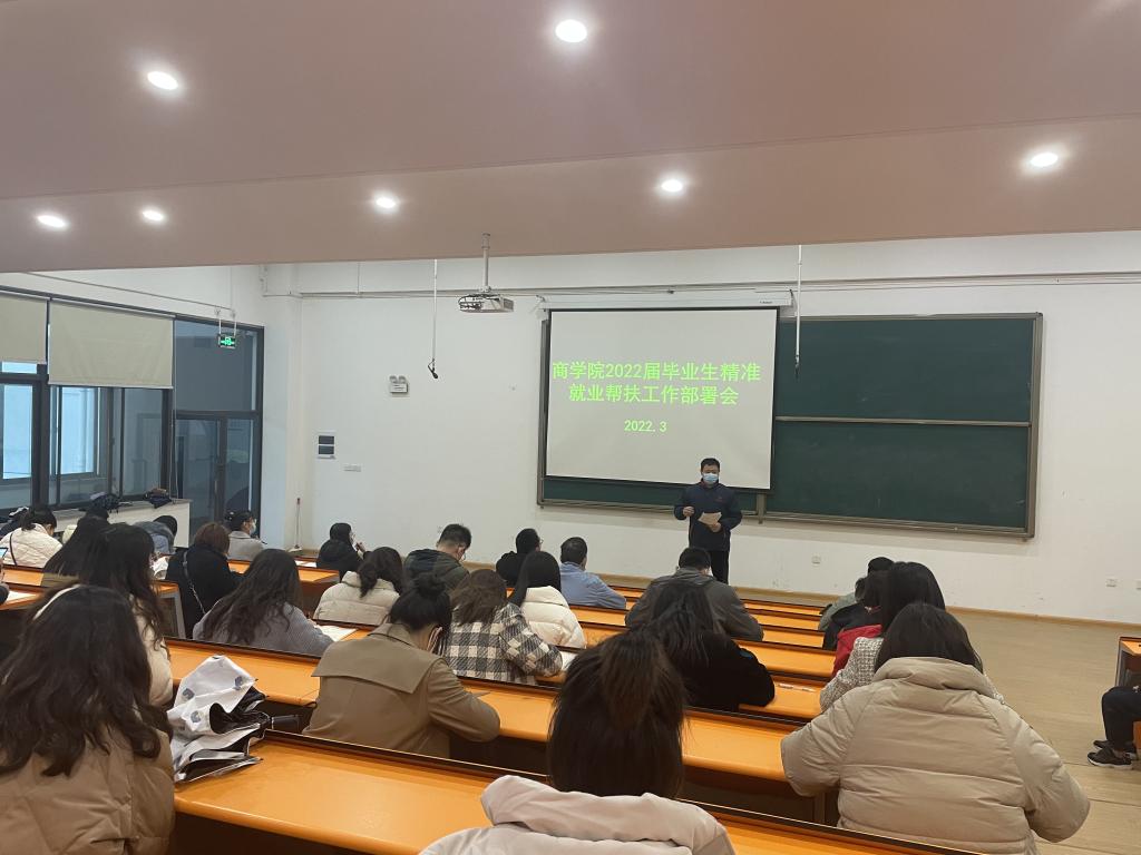 2022年3月24日,商学院在2号教学楼116教室组织召开了2022届毕业生精准就业帮扶工作部署会。商学院党委书记郭峰、副院长白朋飞及全体教职工参加了此次会议。