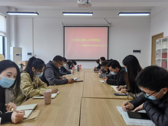 3月29日-4月29日是文明礼貌月,为深入贯彻落实活动主题,2022年3月29日下午14:30,管理学院于2-305召开文明礼貌月动员大会。参加会议的有管理学院党委书记张小雁同志,行政秘书许广庆,全体辅导员同志。