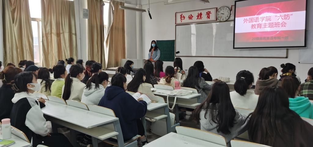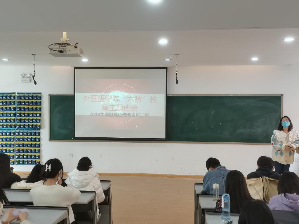 为普及安全知识,增强安全意识,提高学生的自我安全保护能力,外国语学院各班于3月24日召开了以“六防”为主题的安全教育主题班会。