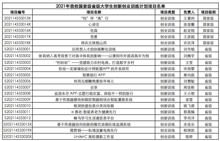 众创空间的开设主要是为大学生创业群体进行服务,构建新型的创新创业综合平台,为大学生创业提供一站式服务。2021年,众创空间完成17个团队入驻,提供吸纳就业100人以上,且实现稳定发展。其中2021年荣获大学生创新创业训练计划项目国家级立项5个,省级5个。2022年,众创空间仍继续欢迎有创业想法的同学入驻,为我校学生的创业实践助力。