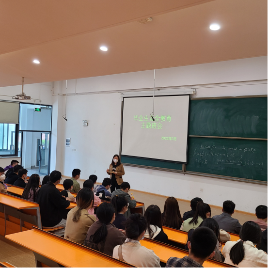 2022年3月29日下午,商学院2022届毕业生安全教育主题班会在2号教学楼116教室召开,商学院2022届物流管理本科、市场营销本科1、2班的全体在校生参加了本次班会,班会由辅导员杨慧老师主持。