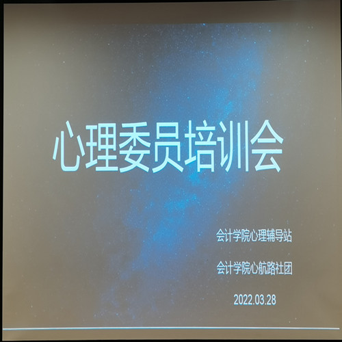疫情防控的特殊时期,为了及时了解全校学生的心理状况,做到学生心理的全方位管控。会计学院心理辅导站及心航路社团,3月28日在教学4号楼,对全院各班级心理委员开展“3.25善爱我——战疫情 话使命”为主题的心理委员培训。