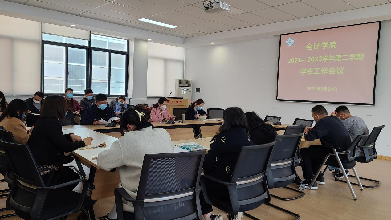 为切实提高疫情防控风险意识,保障师生健康安全,会计学院召开2022年清明节假期安全部署专题会议。会计学院党委书记张蕾同志、会计学院行政秘书兼团委书记陈刚老师、会计学院行政秘书兼团委副书记刘锦老师以及全体辅导员老师参加了本次会议。