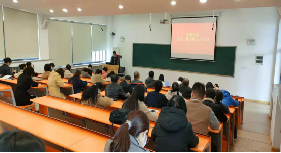 3月31日下午14点,管理学院在教学2号楼召开安全工作专题会议,参会人员有管理学院的领导班子以及全体教职工。本次会议采取主会场与分会场同时进行的方式,在2号楼107室和208室召开,全体成员佩戴好口罩、隔位就座。