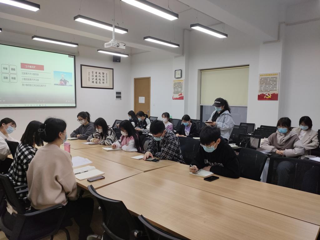会上观看了中央党校胡岩教授关于《宗教事务条例》(新修订)解读,对我国统一多民族国家的基本国情、民族关系、区域自治制度等内容进行了深入学习,随后大家针对宗教事务进行讨论交流。学生党员刘沛含同学认为:要正确看待民族关系,才能做到正确看待宗教问题,坚持党对意识形态工作的领导权。贾晶同学认为,要正确认识我国多民族国家基本情况,切实加强对宗教事务的依法管理,正确对待其他民族的宗教信仰。
