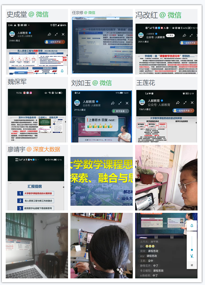 为了拓宽视野、汲取更多的经验,加强课程思政建设,4月19日14:30-16:30,基础部数学教研室组织教师参加了汕头大学校长郝志峰教授关于《大学数学课程思政的探索融合与思考》的线上培训。两个小时的培训高屋建瓴、内容丰富、干货满满,大家认真聆听并做了笔记。老师们纷纷表示收获颇丰。