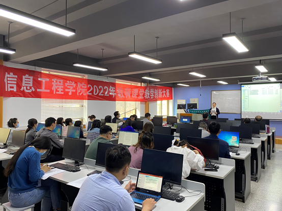 为深入贯彻落实全国、全省教育大会精神和省教育厅《关于加快建设高水平本科教育全面提面提高人才培养能力的实施意见》,聚焦教学创新、推动教学革命,不断提高教师教学创新能力,引导高校教师潜心教书育人,打造高校教学改革的风向标,信息工程学院于2022年4月21日下午在资-204教室举办了教师课堂教学创新大赛。