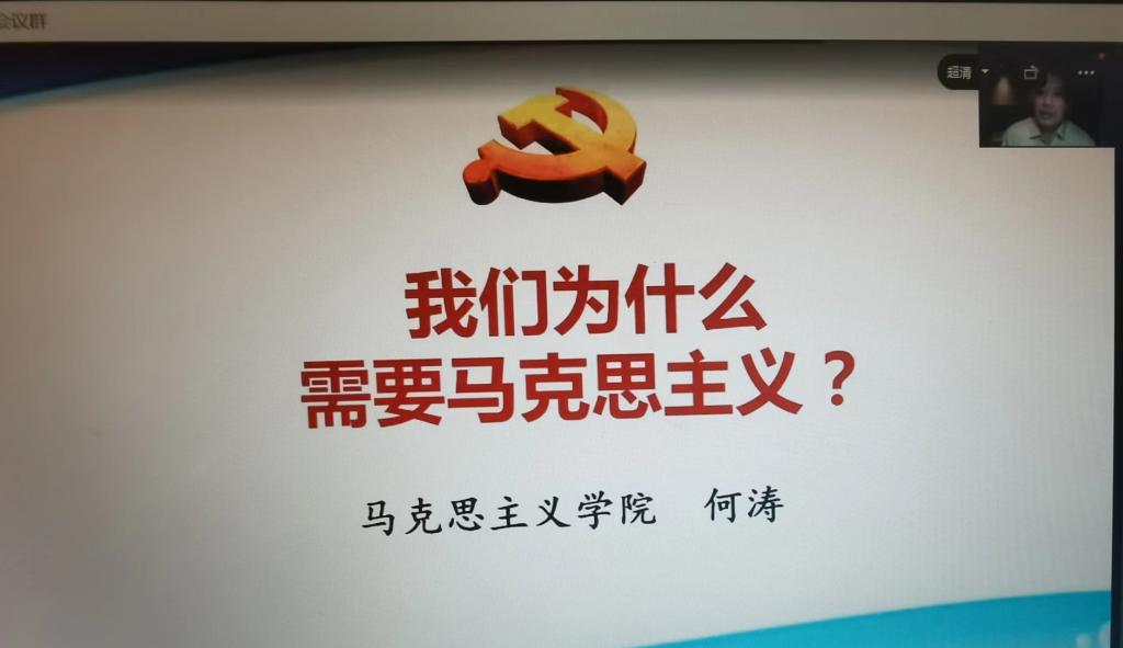 4月20日晚,马克思主义学院何涛博士做《我们为什么需要马克思主义》专题报告,全体教师及青马社团学生参加。