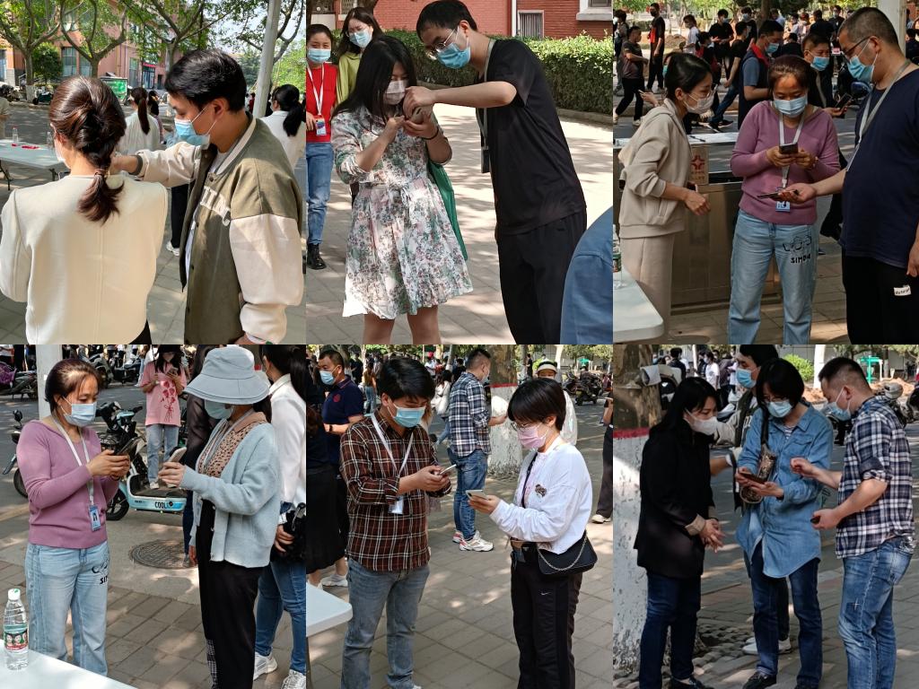 建设平安升达,外国语学院在行动,疫情防控,人人有责。2022年4月25日下午,按照新郑市教育系统重点人群一周两检的要求,我校在医务室同侧对全体教职工进行了核酸检测。外国语学院积极响应号召,派出六名志愿者助力核酸检测。