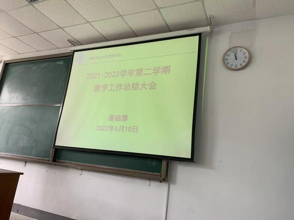 6月10日上午11点30,基础部召开2021-2022学年第二学期教学工作总结大会。会议由张志银书记主持。王莉莉主任和焦争鸣副主任参加了此次会议,并作出指示。