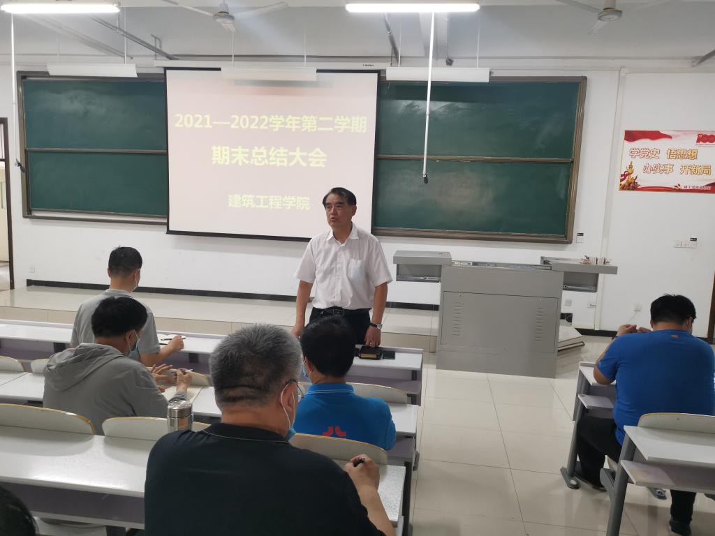 6月16日下午,建筑工程学院在建工楼610召开2021-2022学年第二学期期末总结大会。会议由建筑工程学院院长杨开云主持,党党书记韩炎涛、副院长高燕、教学秘书齐雷、行政秘书赵杨及全体教师参加。