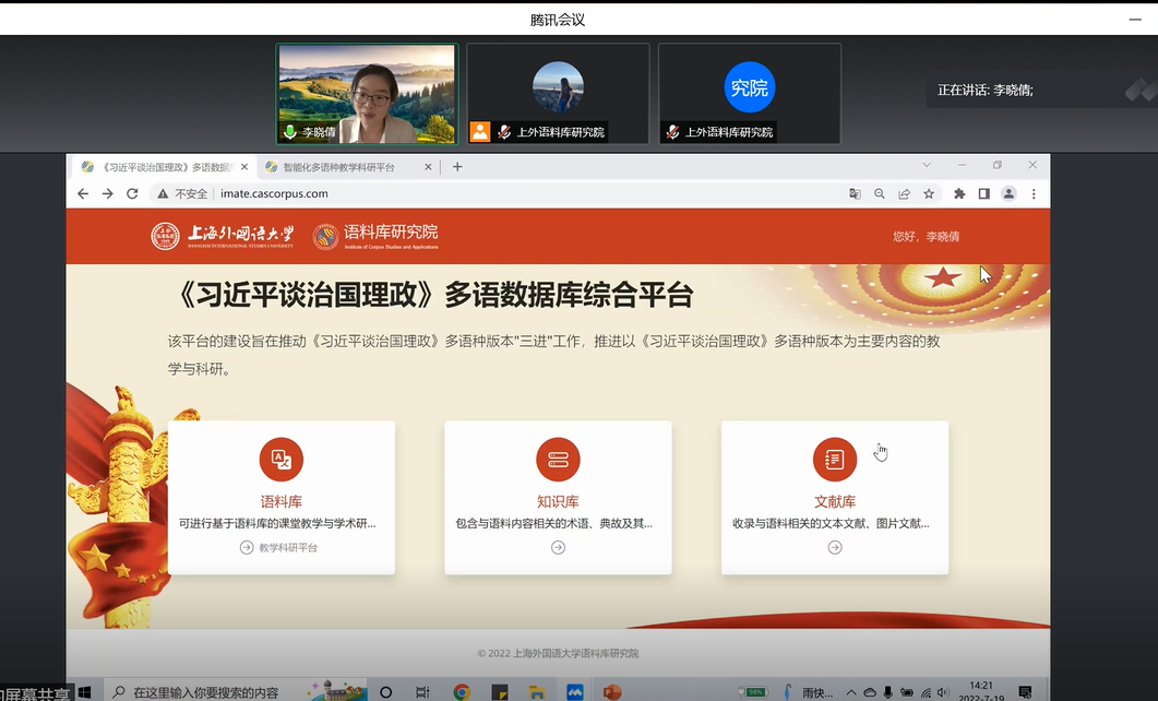 为继续推动语料库在外语教学与研究及其他相关领域中的应用,加强该领域的学术交流,上海外国语大学语料库研究院于今年暑假举办了“语料库与外语教学研修班”,通过腾讯会议,以线上讲座的方式举行。基础部选派李璐老师利用暑假7月18-7月20日三天的时间参加了本此研修班一系列讲座。