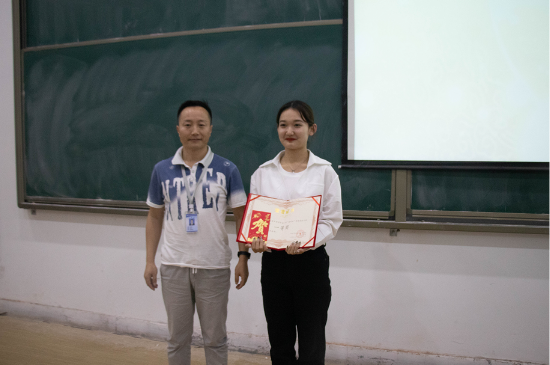 2022年9月30日下午六点,文法学院第一届“童商杯”学前技能大赛颁奖典礼在教学一号楼118教室成功举办,文法学院副院长赵严俊、学前教研室主任闫振刚、艾尚国际副总经理庞艳军和参赛学生出席。