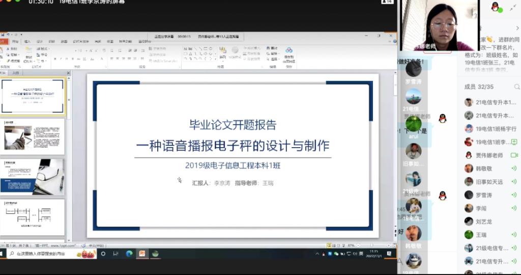 11月1日到11月4日,信工学院电子信息工程专业23届毕业论文开题答辩会在线上举行,参加此次答辩会的为23届电子信息工程专业全体毕业生以及电子信息工程专业的全体教师,答辩会分组在不同的线上会议室举行。