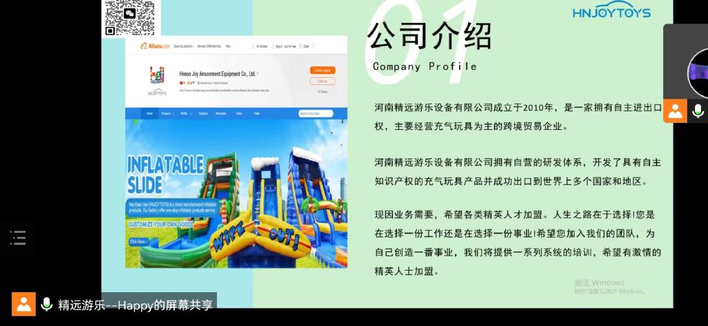 河南精远游乐设备有限公司拥有自营的研发体系,开发了具有自主知识产权的充气玩具产品并成功出口到世界上多个国家和地区。宣讲会结尾河南精远游乐设备有限公司行政人事负责人王亚丹与同学们进行了线上互动,对于同学们感兴趣的问题一一作了解答。