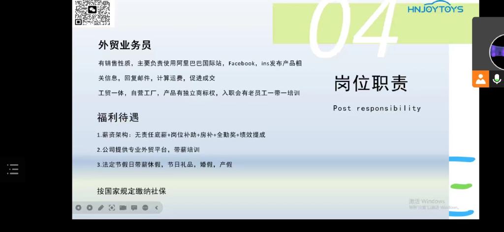 为了全力推进2023届毕业生就业工作顺利开展,帮助2023届毕业生解决就业问题,外国语学院开展网上招聘会系列活动。11月3日上午10点外国语学院通过腾讯视频会议平台,开展了河南精远游乐设备有限公司专场网上招聘会活动。本场网络招聘会由河南精远游乐设备有限公司行政人事负责人王亚丹主讲,外国语学院2023届就业专员武珍毅主持,23届商务英语专业毕业生参与。