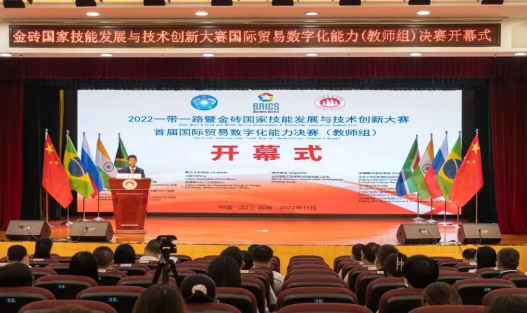 金砖国家技能发展与技术创新大赛是2017年金砖国家最高领导人会晤筹备委员会认可,经中华人民共和国外交部备案、金砖国家工商理事会批准的国际大赛。国际贸易数字化能力(教师组)决赛是一带一路暨金砖国家技能发展与技术创新大赛中国赛区的重要赛项,目的是促进一带一路及金砖国家技能发展和技术交流,落实金砖五国共同签署的有关人才发展合作备忘录和金砖领导人《厦门宣言》《约翰内斯堡宣言》《巴西利亚宣言》《莫斯科宣言》关于技能发展的相关精神,搭建一带一路暨金砖国家职业技能发展、数字化能力培养和智能技术创新的国际平台。本次决赛包含四个模块内容,分别为国际贸易结算单证操作、国际贸易报关报检操作、进出口商品归类操作及国际货运业务操作,主要考察选手国际贸易全流程的实操能力。