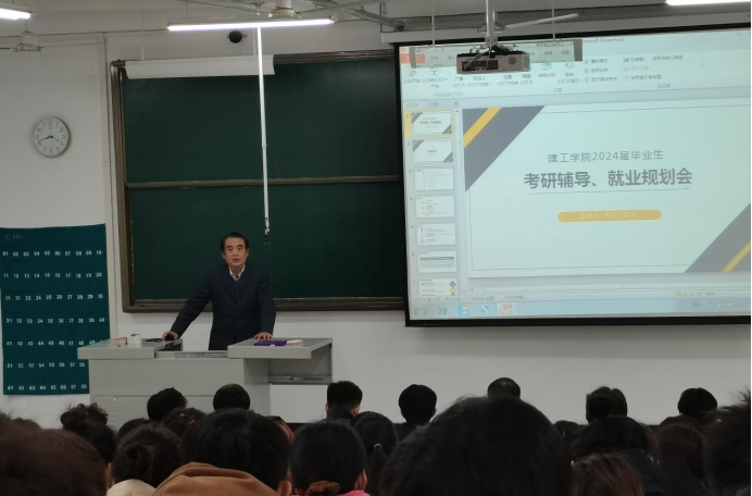 为更好做好就业工作及学生考研规划辅导工作,2月23日下午,建工学院院长杨开云教授在建工楼608教室组织召开考研辅导和就业规划会。辅导员王洋洋、朱俊博及2024届工程造价全体本科毕业生参加会议。会议由王洋洋主持。