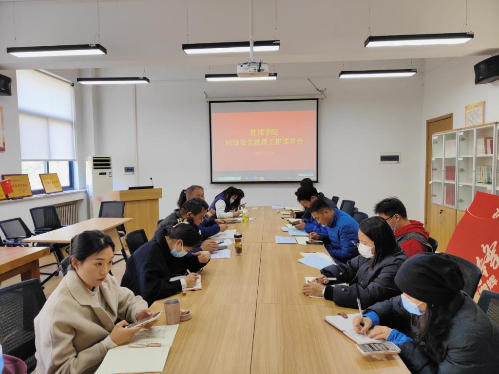 为了营造更加安全文明的网络环境,提升同学们的网络安全意识,有效预防网络诈骗,让同学们更安全地网上冲浪,管理学院开展网络安全教育系列活动。11月14日,管理学院党委书记职正路以及全体学工队伍成员在教学二号楼305教室召开网络安全教育部署会,会议由行政秘书许广庆支持。