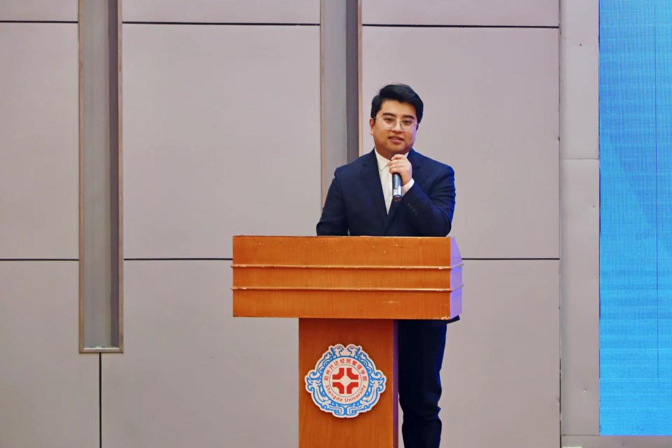 文法学院副院长赵严俊为本次会议进行了致辞,对拨冗前来的校友理事予以感谢与肯定,同时代表外出学习的段丰乐院长向理事们介绍了文法学院现今的发展与变化,对学院校友会今后的发展寄予了期望。