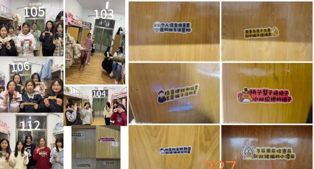 辅导员深入剖析了当前网络诈骗的常见手段和特点,通过生动的案例,使同学们对诈骗有了更深刻的认识。同时,辅导员还就如何识别和防范诈骗提出了具体的建议,如:不轻信陌生电话和短信;不随意泄露个人信息;遇到可疑情况及时报警等。会后,辅导员为学生们精心准备了防骗小贴纸,并分发到各个宿舍。这些贴纸设计简洁明了,色彩醒目,旨在引起学生们的关注和重视。