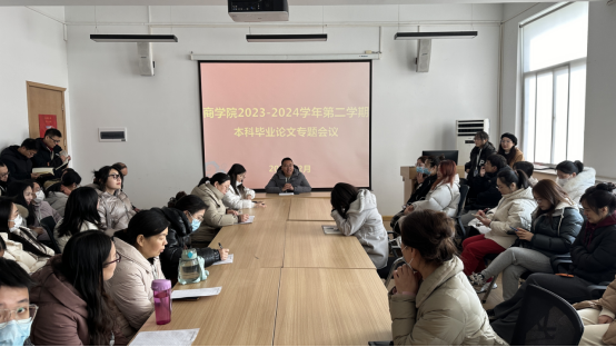 2月26日上午,商学院在教学2号楼315室召开2023-2024学年第二学期本科毕业论文专题会议,院长白朋飞、教学秘书马巧丽及全体教师参会。