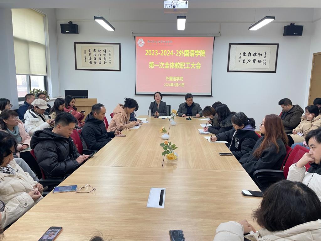 本次全体教职工大会,对学院开展2024年工作,促进全体教职工凝心聚力,更好助力学院各项事业发展有重大意义。外国语学院全体教师将以更加饱满的热情和更务实的作风投入到学习和工作当中。