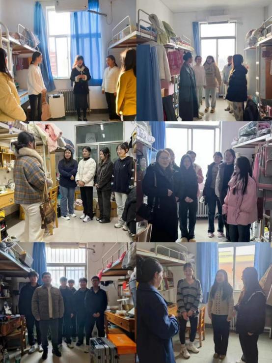 本次宿舍走访中会计学院辅导员询问学生到校后的适应情况,倾听学生的学习规划并给予指导,查看学生宿舍暖气、空调等设施是否正常,并和学生们交流了假期期间的奇闻趣事。而后各位辅导员老师指导学生进行内务整理、并提醒学生注意及时通风消毒,保持宿舍干净卫生,对宿舍违规使用电器等安全隐患进行了全面检查。