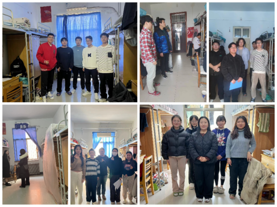 辅导员老师们在走访视察学生寝室中与同学们深入交流了学习、生活方面的相关问题。详细询问了学生新学期学习计划,鼓励学生明确学习目标。针对毕业生,辅导员老师们对学生的考研、考公、实习等情况做了深入了解,并鼓励大家积极调整状态。辅导员老师们在指导学生整理内务的同时,也向大家宣讲宿舍安全知识,叮嘱同学们要提高安全防范意识,注意用水、用电安全。自觉遵守寝室管理规章制度,养成健康文明的生活习惯,共同营造良好的寝室氛围。