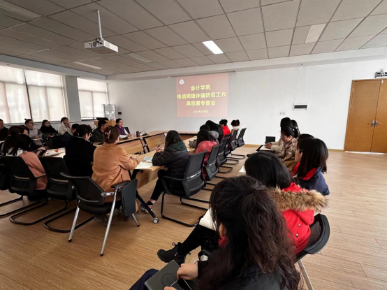 加强师生防诈意识,提高防诈技能,已经刻不容缓。3月9日,会计学院召开电信网络诈骗防范工作再部署专题会,强调加强大学生群体防诈意识的重要性,并在会议中明确工作重点,要求全院扎实有序开展工作。会议由会计学院党委书记张蕾主持,行政秘书陈刚老师和全体辅导员参加了会议。