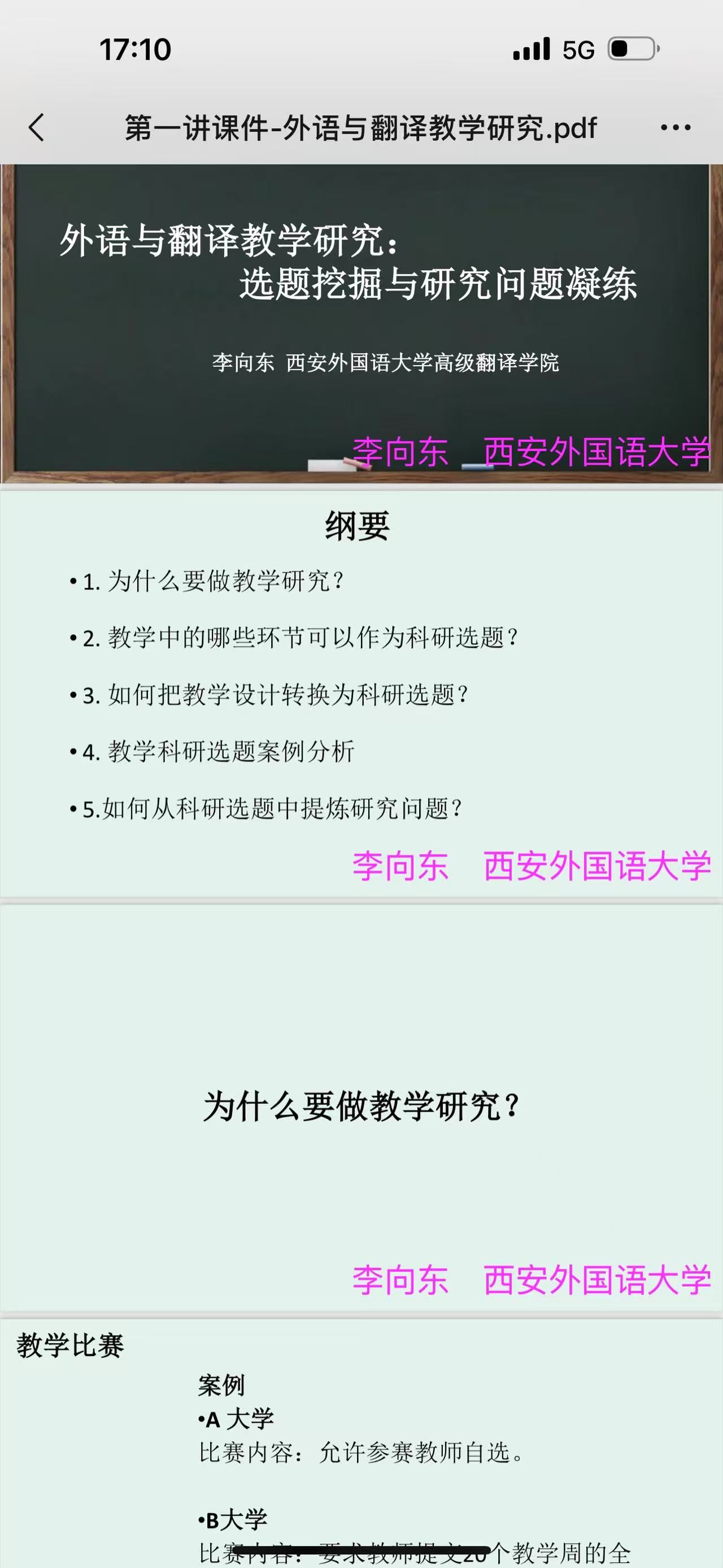 来自西安外国语大学的李向东教授分享了题为《外语与翻译教学研究:选题挖掘与研究问题凝练》的讲座,跟英语教师分享和探讨如何把教学、科研紧密结合,如何基于教学环节来进行科研选题,给大家带来全新的思路。之前觉得是各自为政的教学和科研两大环节,其实完全可以深度融合,而且相互促进。