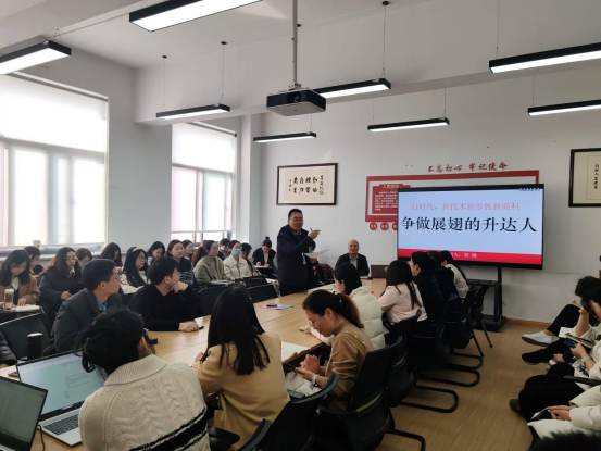 2025年2月28日上午,商学院邀请商业智库创始人、上海伽贝智能科技有限公司总经理贺锋先生开展题为“AI时代,新技术新零售新商科——争做展翅的升达人”的专题讲座。讲座由商学院院长白朋飞教授主持,商学院全体无课教师参与,共探AI时代商业趋势与企业文化实践。