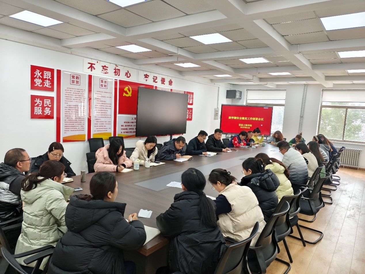 2025年3月5日,信息工程学院在学院会议室召开了新学期安全稳定工作部署会议,学院党委书记李赵法、行政秘书王崇以及全体辅导员参加会议。本次会议由学院党委书记李赵法主持,旨在全面贯彻落实学校关于安全稳定工作的指示精神,确保新学期各项工作平稳有序开展。