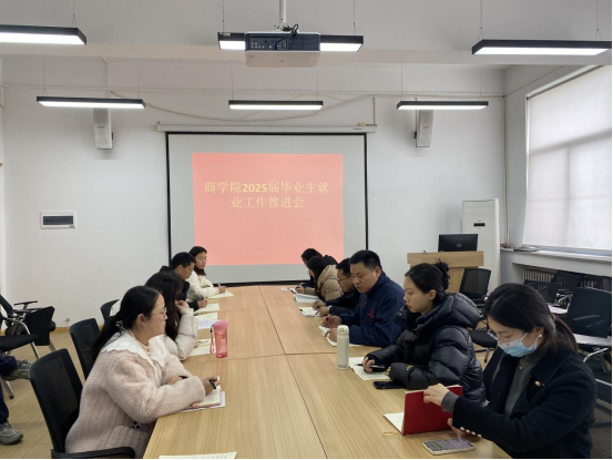 为深入贯彻落实党中央、国务院关于稳就业、保就业的决策部署,进一步做好2025届毕业生就业服务工作,商学院于2025年3月5日召开2025届毕业生就业工作推进会。商学院党委书记郭峰、院长白朋飞出席会议并讲话,行政秘书郗艳花、教学秘书马巧丽、2025届毕业班辅导员参加会议。会议总结当前就业工作进展,分析形势问题,并就下一阶段重点工作进行部署。