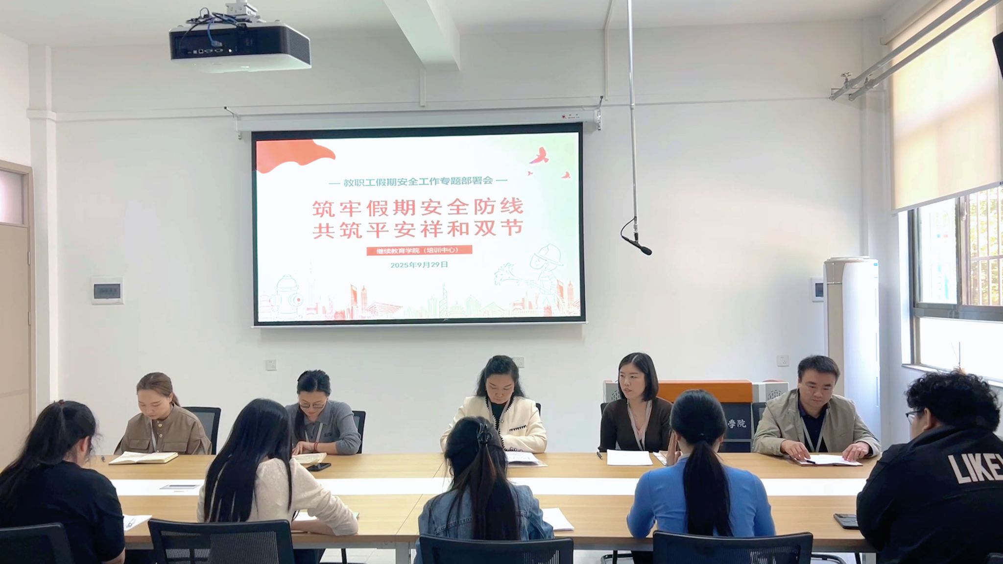 为全面筑牢校园安全防线,营造风清气正、祥和稳定的节日环境,9月29日上午,继续教育学院在112会议室召开校园安全专题工作会。副院长吴娟娟教授、办公室主任林方及全体教职工参加。