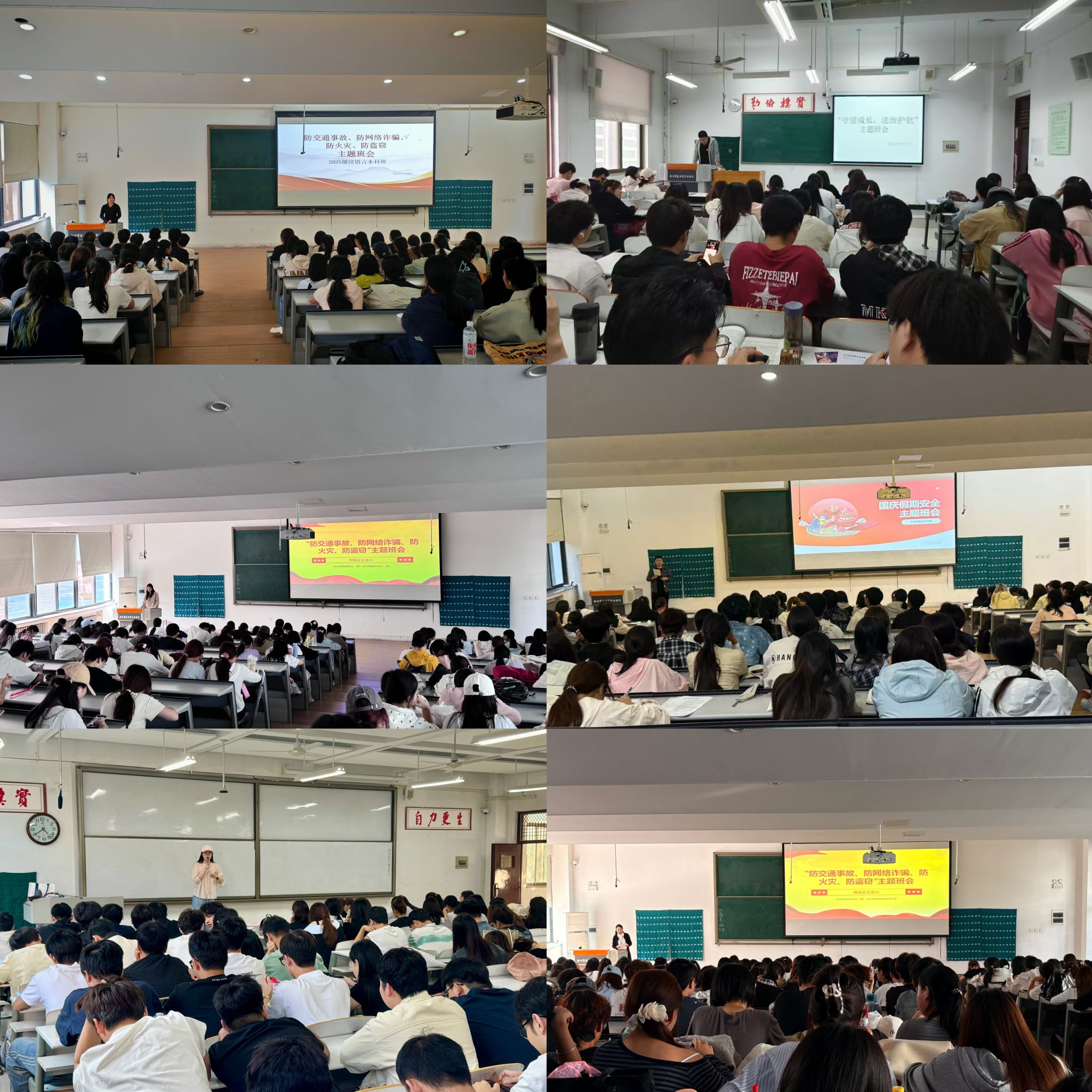 为切实增强学生安全防范意识,提升自我保护能力,坚决防范各类安全事故发生,在2025年国庆、中秋双节来临之际,文法学院以班级为单位全面开展“防交通事故、防网络诈骗、防火灾、防校外盗窃”主题班会。全院各年级辅导员精心组织,学生积极参与,共同织密校园安全防护网。