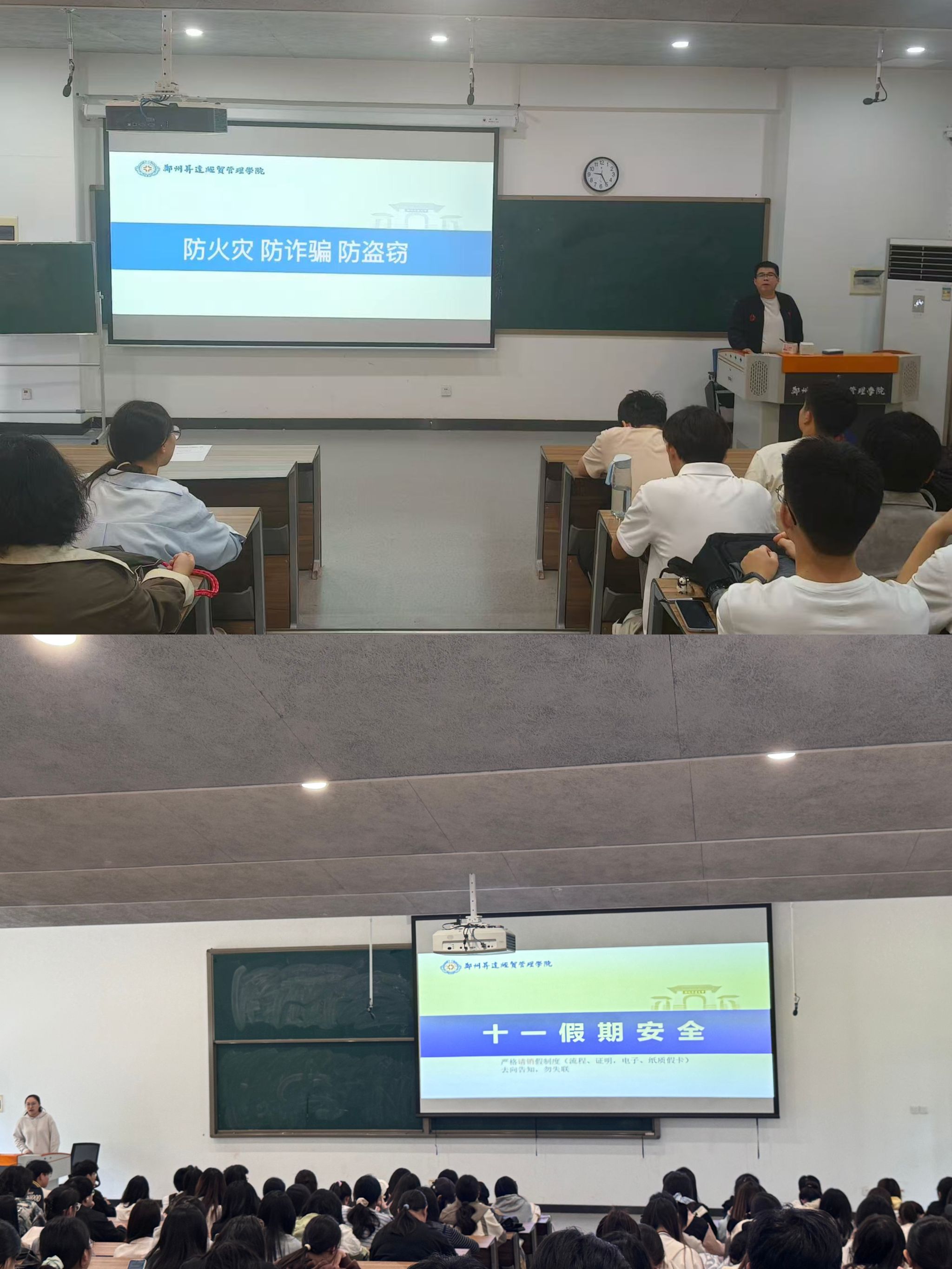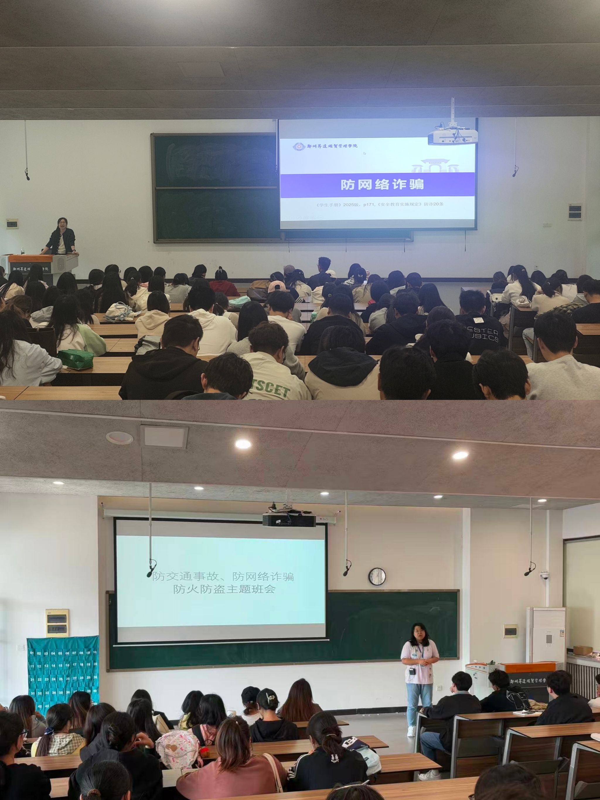 为切实保障学生节日期间人身与财产安全,进一步提升学生安全防范意识和自我保护能力,国庆假期前夕,金融贸易学院组织各班级开展“防交通事故、防网络诈骗、防火灾、防盗窃(校外)”安全教育主题班会,为全院学生敲响安全警钟,织密校园安全防护网。