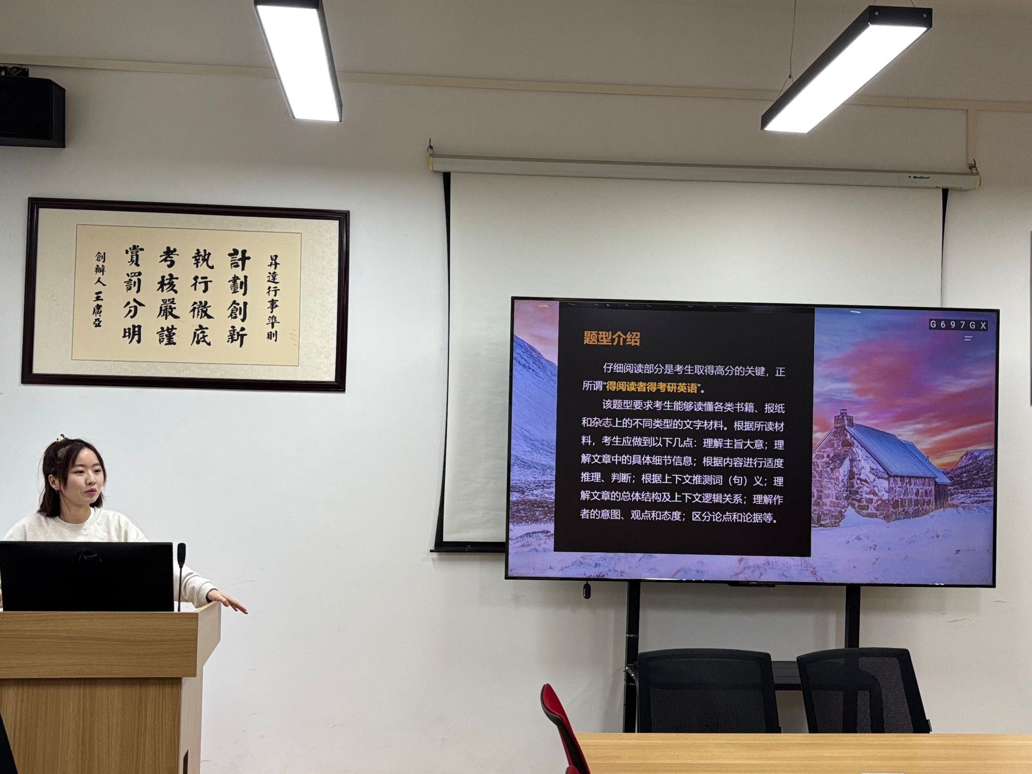 此次讲座紧扣跨专业考研学子的英语备考痛点,内容兼具理论性与实操性,不仅帮助学子厘清了阅读题型的解题思路,更增强了备考信心。后续,外国语学院将继续围绕考研英语写作、翻译等核心模块,持续推出系列辅导讲座,为考研学子提供全方位、精准化的备考支持。