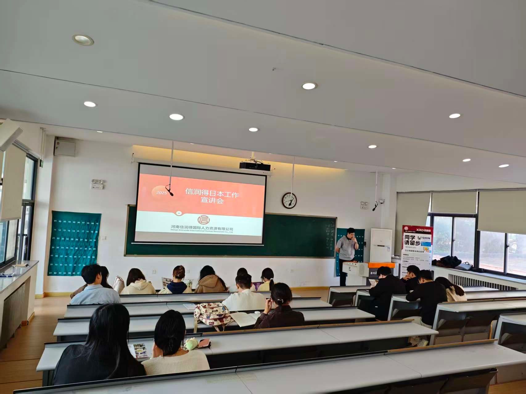 为帮助日语专业学生把握就业趋势、拓宽发展路径,外国语学院特邀河南信润得国际人力资源有限公司,于10月15日下午在教一楼109教室举办了日语专业就业专场宣讲会。