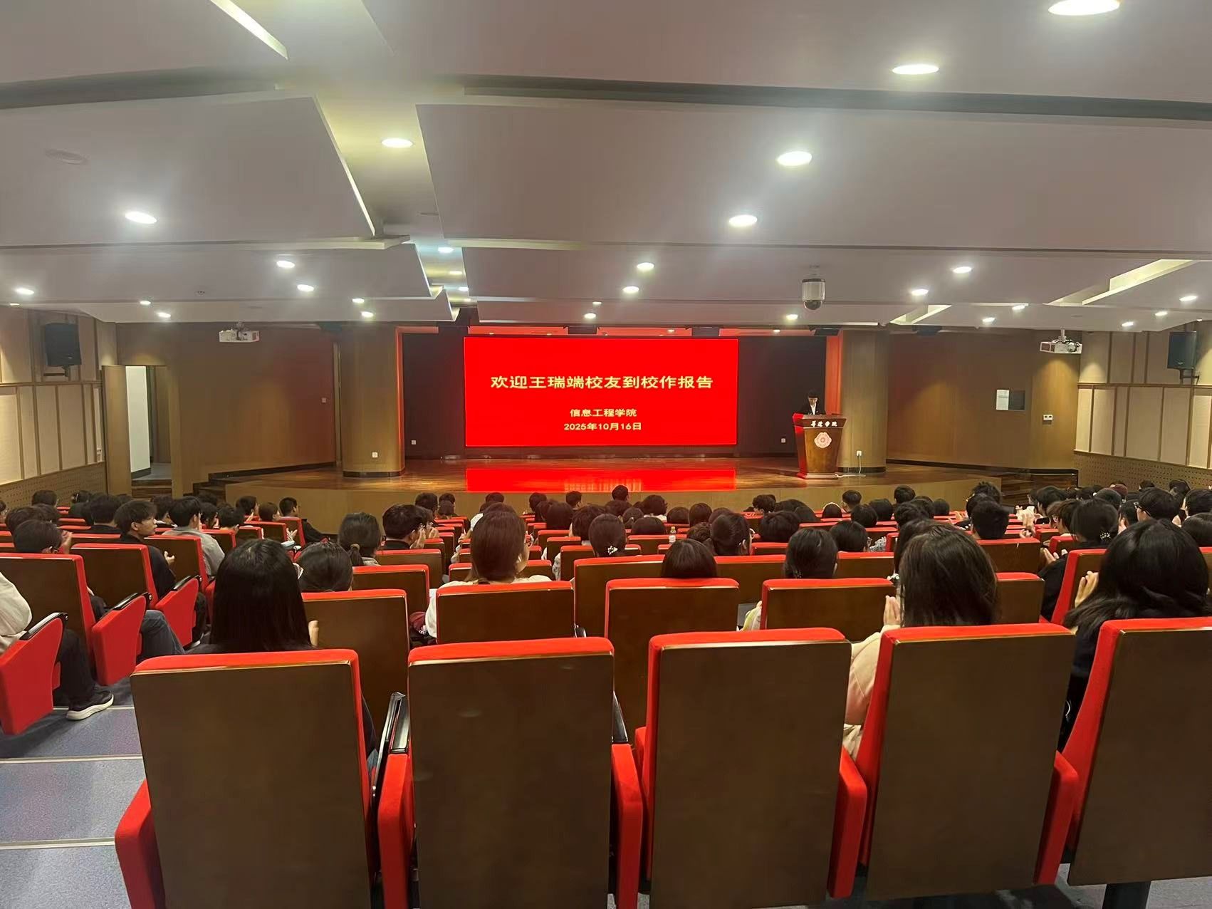 2025年10月16日下午,信息工程学院邀河南蓝鸥科技有限公司副总经理、学校知名校友王瑞端,在双创大讲堂为25级新生作“你的专业未来,如何被AI人工智能重塑?”主题学术报告,助力学子明晰AI时代专业发展方向,活动圆满成功。
