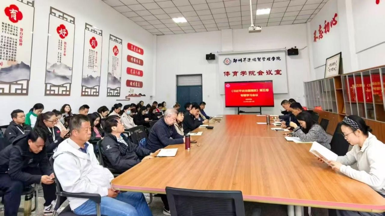 10月16日下午,体育学院组织《习近平谈治国理政》第五卷专题学习会,院长张王利、院党委书记韩炎涛、副书记高建涛和全体教工在体育学院会议室参加学习。学习会由韩炎涛主持。