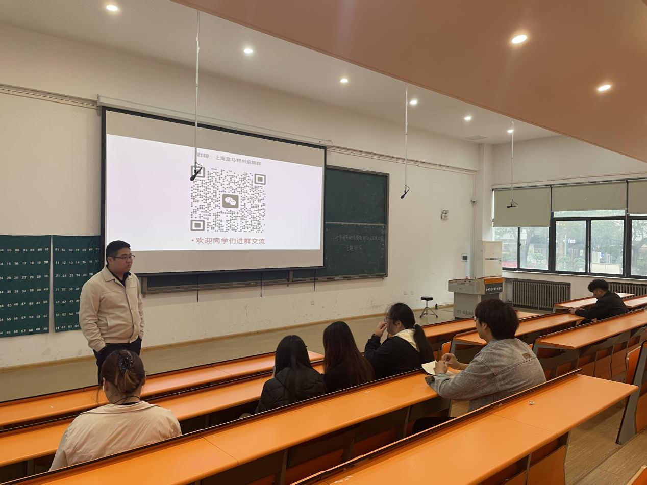 为了给商学院2026届毕业生提供良好的就业平台,创造更多的就业机会,2025年10月11日下午,上海盒马生鲜走进商学院,在2号教学楼116教室举行了专场宣讲会。