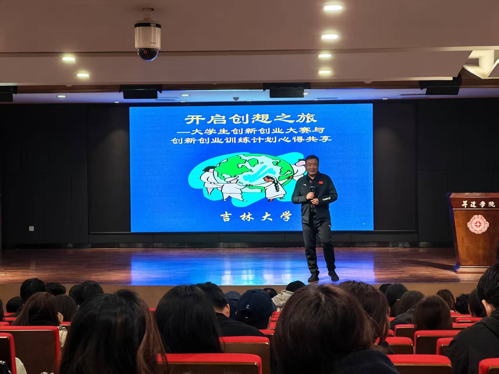 随后,张金山教授围绕“大学生创新创业大赛”与“创新创业训练计划”两大核心主题展开深度分享。在案例解析环节,他以吉林大学白求恩晚晴志愿者协会的项目为典型范例,生动阐释了项目创新中“善于挖掘”的关键意义——无论是挖掘社会需求、校园痛点,还是挖掘自身专业优势,都是打造优质双创项目的起点。在时代背景解读部分,张教授系统梳理了“Internet +”“创业”等核心关键词的内涵变迁,从早期的技术驱动到如今的“技术+场景+需求”融合,清晰揭示了创新驱动发展的现实路径;同时,他还深入解读了国家近年来支持大学生创新创业的政策体系,从资金扶持、平台搭建到学分认定、就业帮扶等方面,让师生全面了解双创实践的政策红利。